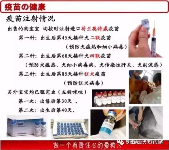 疫苗均已接种荷兰英特威进口疫苗 .我们的狗宝宝出生25天注射2联荷兰英特威疫苗和驱虫,30天注射狂犬疫苗,45天注射4联英特威疫苗和驱虫,75天注射6联荷兰英特威6联疫苗和驱虫,保证纯种健康,全场数百条种犬均由国内外引进,品质优良,专业喂养,精心繁殖,血统纯正,毛色好,品相好,现有宝宝出售,每个品种的狗宝宝有1-3窝可以选择,一整窝的宝宝任您挑选,我们每窝宝宝的爸爸妈妈您都可以看到,再也不用为品种问题而担心。本犬业公司负责人以诚信经营为本,信誉第一为原则,保证您满意为宗旨。选择了我们您就选择了放心!本犬场有40多个品种的幼犬,由专业人员为您详细介绍,给您推荐饲养最好的品种,做到让您100/100满意!