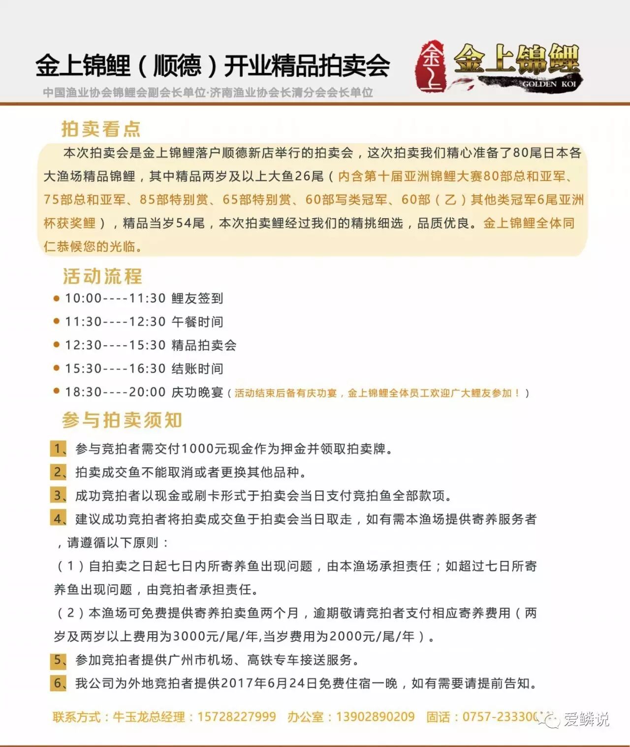 金上锦鲤(顺德店)开业精品拍卖会将于2017年6月25日举行,期待各位鱼友的莅临!