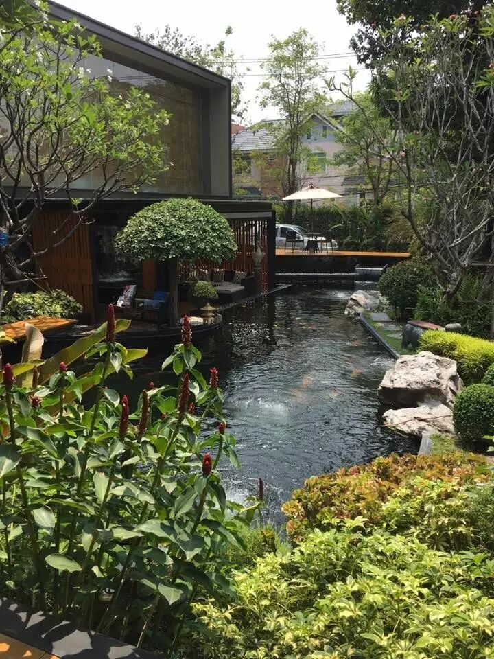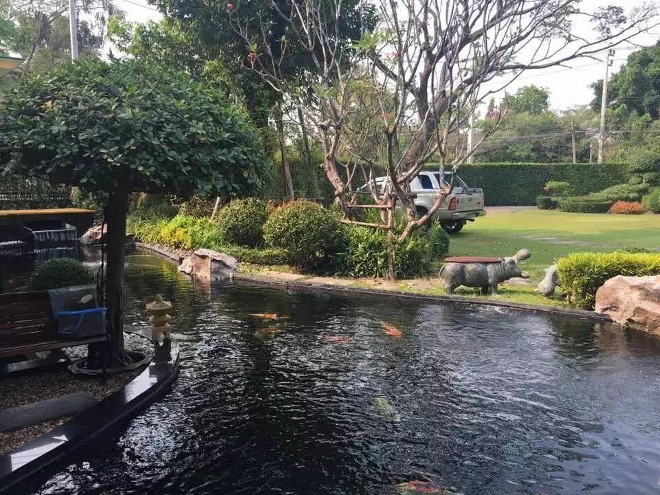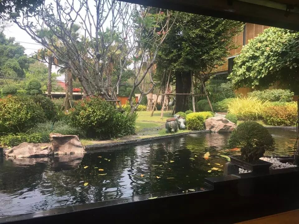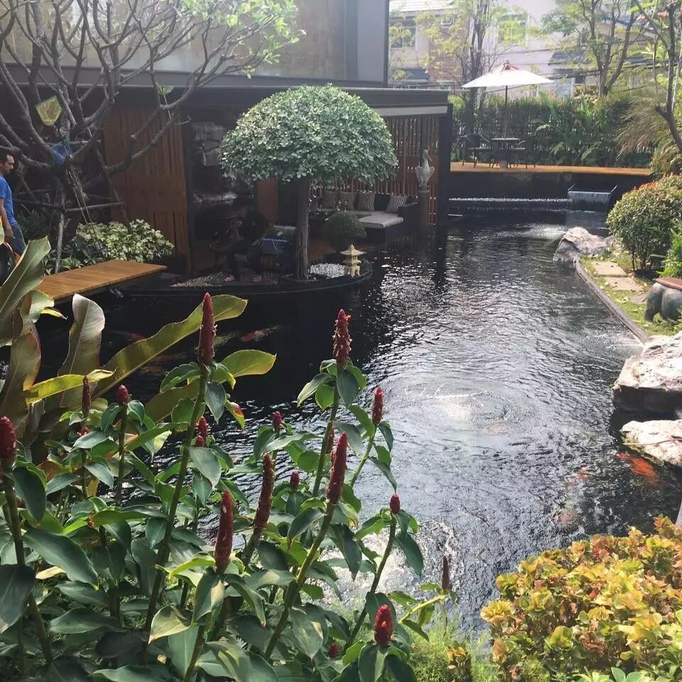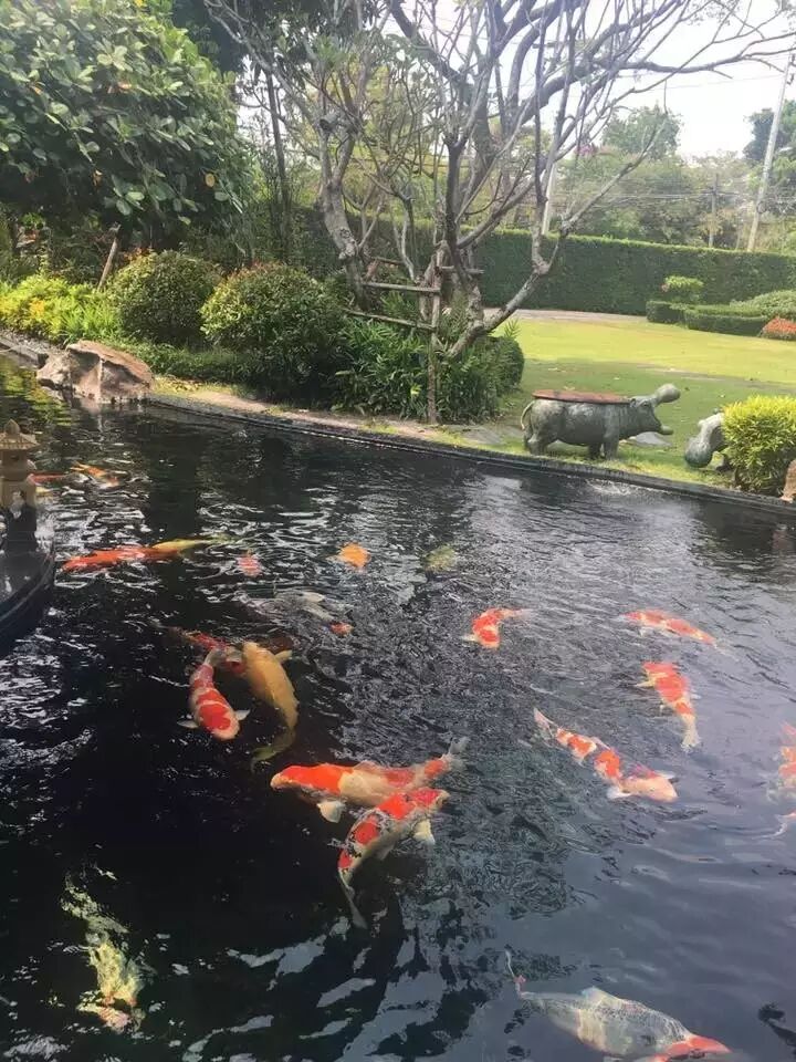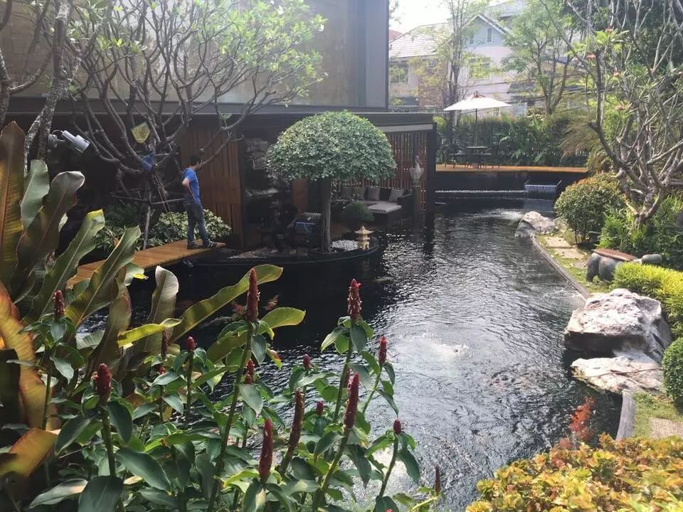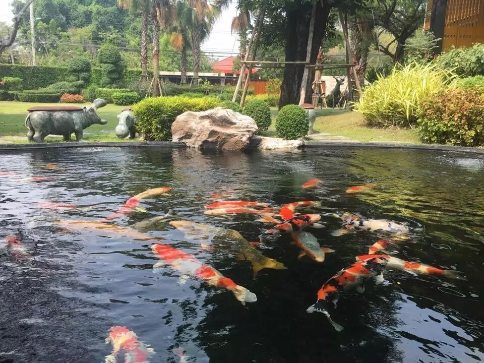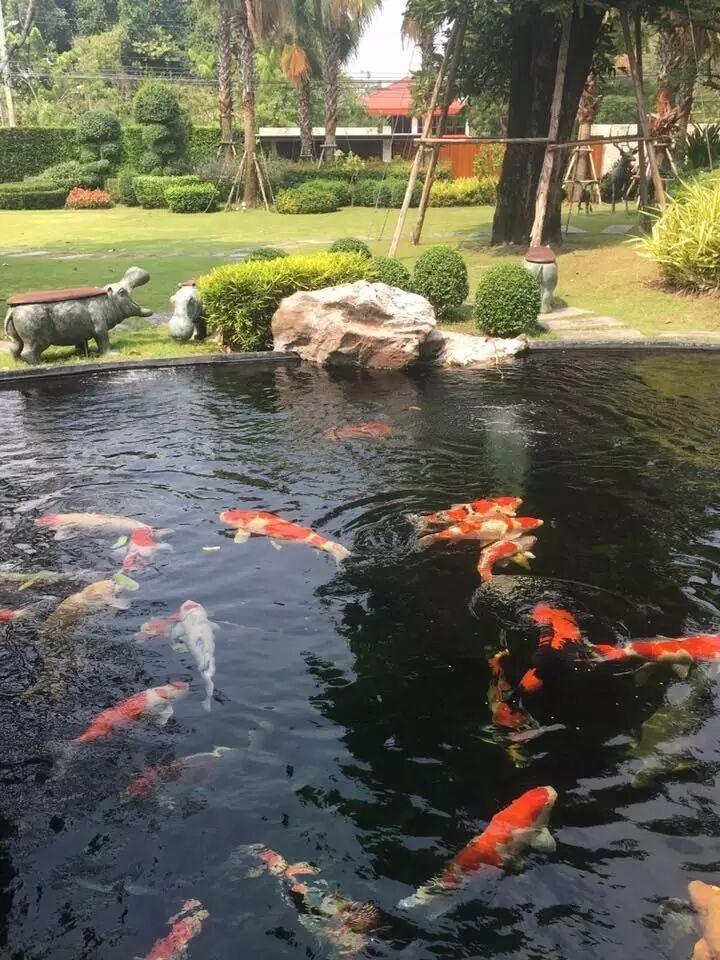环境优美的绿色锦鲤鱼池园