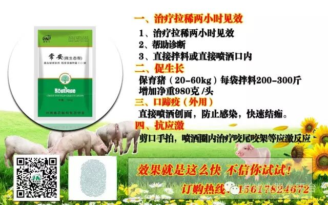 5、对于刚出生的仔猪可以直接涂抹皮肤吸收,预防和治疗新生仔猪的腹泻,也可以直接投服口中,对仔猪不明原因的拉稀效果显著。