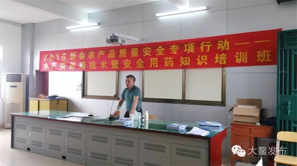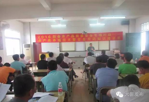 为进一步提高水产养殖户养殖技术水平,指导养殖户在养殖过程中科学、安全地使用药物,保证水产品质量安全。区农林局、区海洋渔业局在大鳌镇科技楼举办2016新会农产品质量安全专项行动——水产类养殖技术暨安全用药知识培训班。