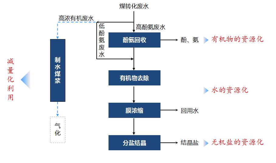 神华集团正在联合社会优势资源进行技术攻关,减少煤化工的废水总量,实现有机物的资源化、水的资源化和无机盐的资源化。神华既关注单元技术的突破,同时也关注系统集成和优化并积极推动示范工程,一直为国家降低水资源压力,维护生态平衡做着努力。