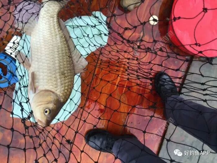 抄网里摘钩的时候才发现,这条黄金鲫鱼是钩下巴车祸钩上来的,跟本没吃钩,哈哈?。