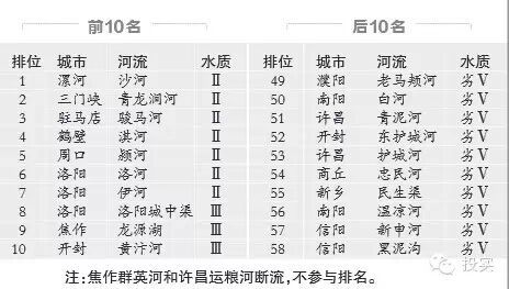 记者从省环保厅获悉,全省城市河流水质已有初步改善,今年第一季度同去年第三季度相比,全省60条城市河流除2条断流外,已有30条河流基本消除劣V类。(向下拉页面,收看全部河南省河流水质排名表)