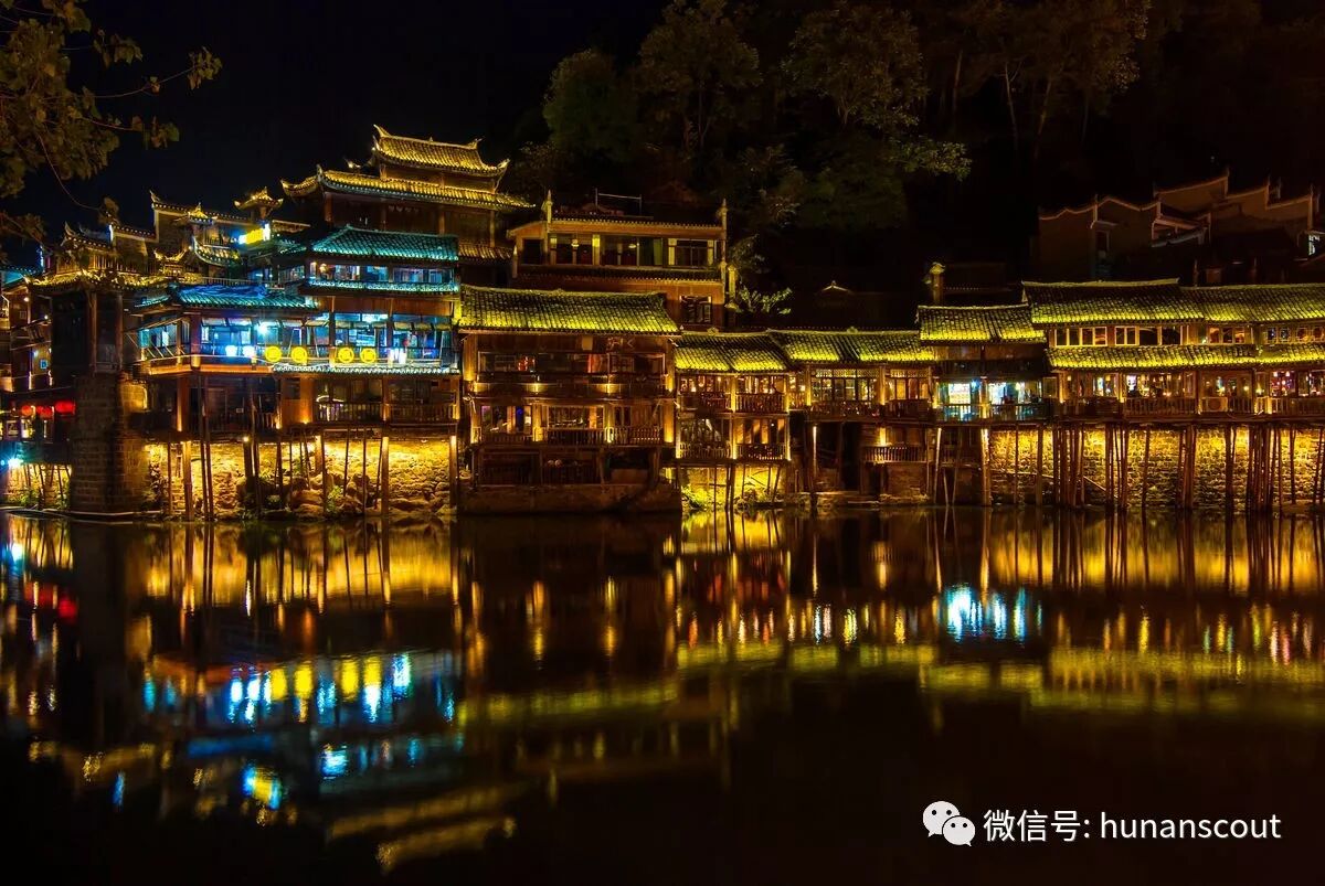 当夜幕降临时,凤凰古镇才刚刚开始,光与影的完美融合,如同一幅幅精美带有诗意的水墨画