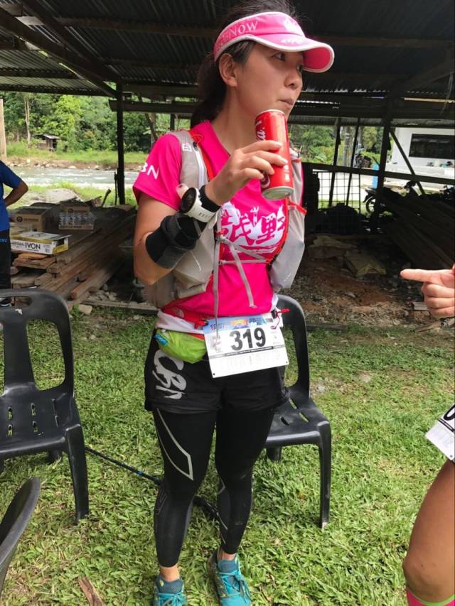 WS11出来依然还是公路小下坡、小上坡,太阳越来越炽热,过了一条小溪后开始最后噩梦般的机耕路爬升,体力耗竭,左脚底剧痛,右脚使用过量导致右脚底板也起大水泡,会阴部剧痛,各种疼痛让我寸步难行,又吃了一片芬必得也不管用,在微信群抱怨走不动了,队友们说挪也要挪到终点!好吧,我挪去终点。大约20人在这个大长坡超越了我,包括前面我遇到过的马来美女、晚上跟过的马来仔、日本仔,马来美女还恭喜我一定可以完赛了,走走停停磨磨蹭蹭 ,遇见赛道摄影师,剧痛让我强颜欢笑不起来,最后到达终点,现场主持人气氛热烈,我亦累成狗欢呼不动。