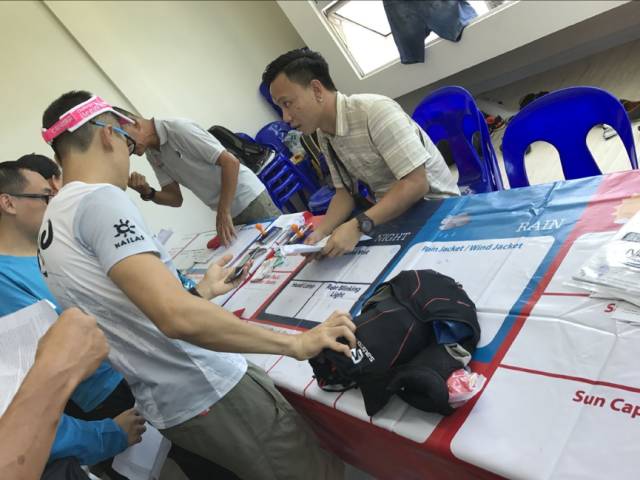 因担心行李丢失没睡好,如果真丢了,那好几个队友可能因缺强制装备而无法参赛。早上醒来,传来好消息,行李到沙巴机场了。打uber取行李,前往赛事办公室领装备还算顺利,领装备时需要把每一样强制装备放入指定区域,然后盖章领取参赛包。
