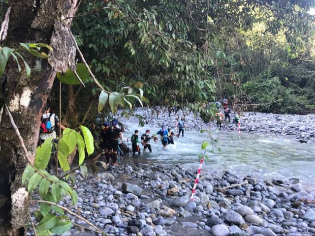 第一囧,由于马来西亚多变的天气,赛事官方比赛前一周才公布最新赛道调整和详实的赛道说明,也给我们这13人带来多重惊吓:许多吊桥被洪水冲断需要淌水,水比腰深,有部分赛道塌方改道。加上我的赛前严重缺练,我预感首百TMBT要想完赛基本不可能,那就权当去沙巴神山旅游吧。