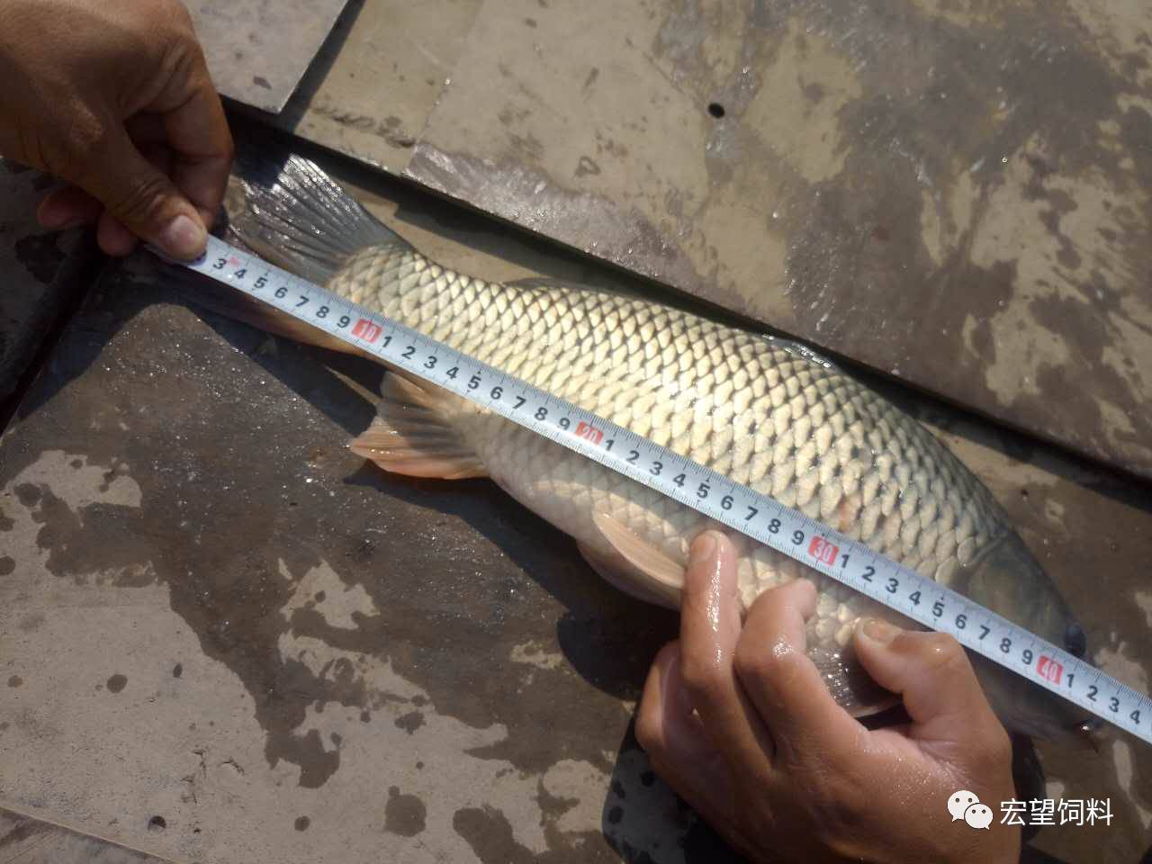 据靳先生介绍,他的鱼苗是2016年7月22日撒的,当时鲤鱼鱼苗均重12个头,到今年6月20日出鱼,出鱼打样均重2.37斤。