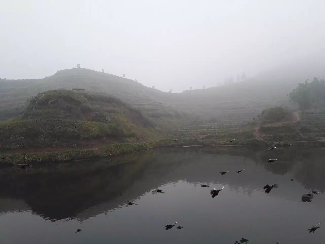 飞起来的那就逗是珍珠鸡哦,看起来好安逸哦