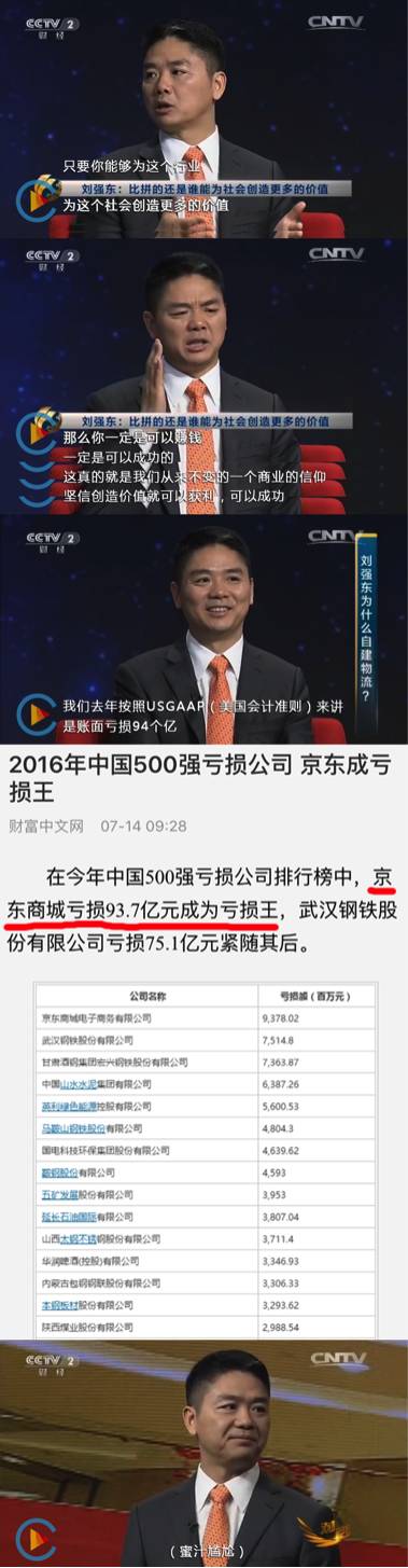 近期,在《财富》(中文版)2016年中国500强亏损公司排行榜的发布上,京东商城以93.7亿元的亏损登顶榜首。