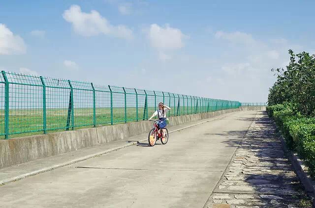 在横沙岛骑自行车真的很舒服,秋日午后还有点热,好在岛上两边林立的树木支起了天然的遮阴蓬,微风不时从路边吹来,就着凉风缓缓的骑行着一点都不觉热,深深的吸上一口清新的空气,开启骑行小岛之旅。