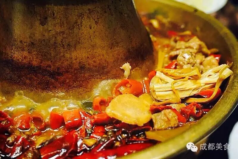 川式麻辣兔铜火锅 采用最对四川人口味的麻辣味,光是表面那一层红彤彤的海椒看起就让人热乎。