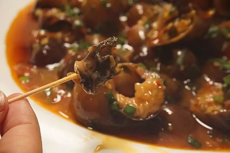 每个田螺都是把肉挑出来去了后面的肠子的,然后和猪肉馅一起塞回去,所以你完全可以放心吃,田螺里面没有其他的,就是肉肉肉,这种独特的烹饪法你吃过没?