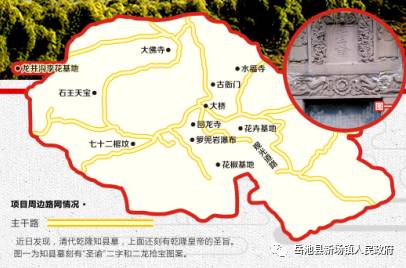 5、回龙庙及桥上又重桥遗迹:位于大桥下游100米处,原有寺庙一座,2层观景亭一座,毁于上世纪八十年代;现存河床上留有建筑遗迹为连接回龙寺与古城街道的木桥基础。