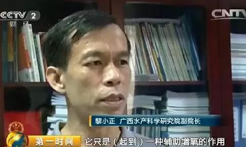 广西水产科学研究院副院长 黎小正:“鱼浮灵”事实上就是一种增氧剂,通过在一些养殖水体里撒“鱼浮灵”,使局部的水域的溶解氧可以在短时间内明显增加。