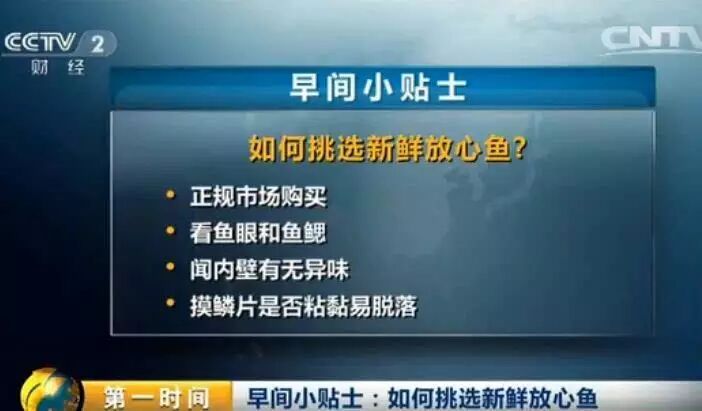 当然,首先是要到正规场所购买,另外请记住“一看二闻三摸”的窍门。一看是看鱼眼,鲜鱼的眼睛清晰光亮,眼球饱满,眼角周边不发红,鱼鳃是鲜红色而不是暗红色的。