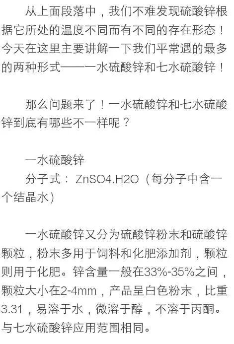 硫酸锌分类