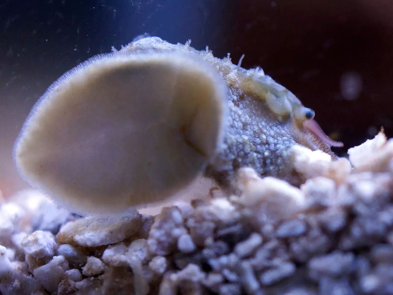 由于它们不能将身体全部缩入背壳中,即便是成年的琵琶螺也面临各种危险,寄居蟹,虾类,甚至鱼类都可以捕食它们!有次缸擦把一只琵琶螺从缸壁掀飞,然后它仰面掉到缸底,然后我看到平时斯文的医生虾竟然第一个跑过去将它的肉撕了一块下来,然后伊津狐和薄荷虾也冲了过来,可是琵琶螺已经迅速遁入活石下面,可见琵琶螺的伪足真的是逃命武器啊~
